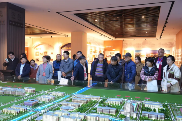 会后,森林舞会官网科技集团董事长张福德、总经理唐佩随队和与会人员一起参观了南通理工学院的数智展馆、张謇教育文化馆等地并合影留念。