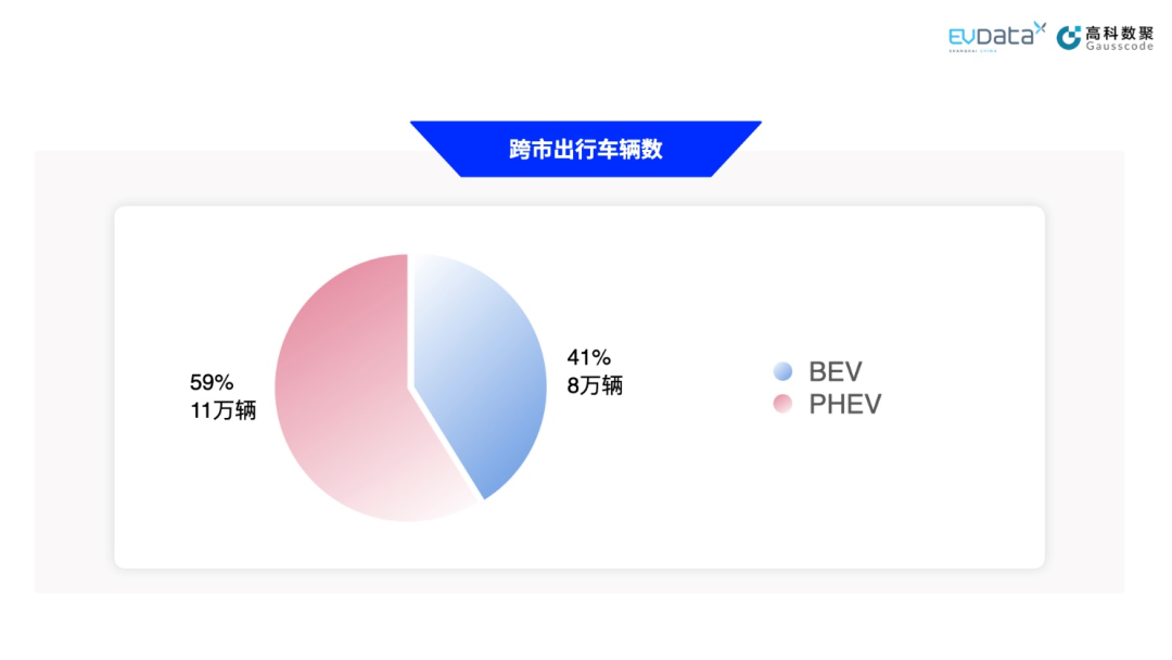 五一期间,选择跨市出行车辆约18.3万辆,其中BEV约有7.5万辆,占比41%,PHEV约有10.8万辆,占比59%。