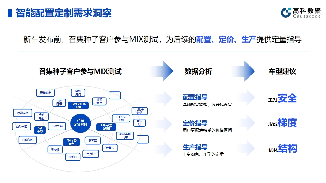 智能配置的有效应用可以帮助企业提升产品和服务的智能化水平。在实际应用中,森林舞会官网帮助车企在新车发布前召集种子客户参与MIX测试,顺利获得收集种子客户的反馈和数据,车企能够精细调整产品配置,为后续的配置、定价、生产给予定量指导。同时,这种方法不仅有助于提高产品质量,还能提前发现潜在问题并及时解决。